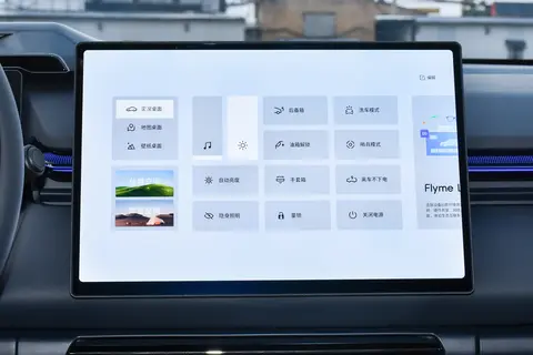 中控区域的15.4英寸悬浮触控大屏是核心亮点,显示效果细腻,操作起来很流畅,跟用平板电脑一样顺手,没有卡顿的情况。它搭载的是LYNK Flyme Auto 1.6.0系统,基于安卓底层开发,能装的应用很多,不管是导航、听音乐,还是用视频软件,都很方便。