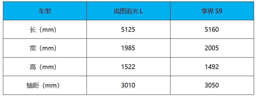 享界S9车身尺寸5160x2005x1492/3050毫米。而岚图追光L车身尺寸:5125x1985x1522/3010毫米。从数据来看,两款车在空间的表现上没有太大区别。