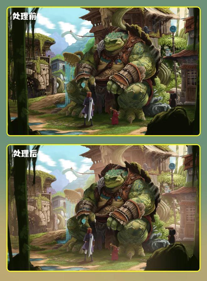 画光能避开过曝和细节丢失,还不改变原本的黑白关系;需要注意的是,划分图层模式是通过互补色来呈现光的颜色:比如想要黄色的光,那么就选蓝色来画,把图层模式改成划分后,就会呈现黄色的光。