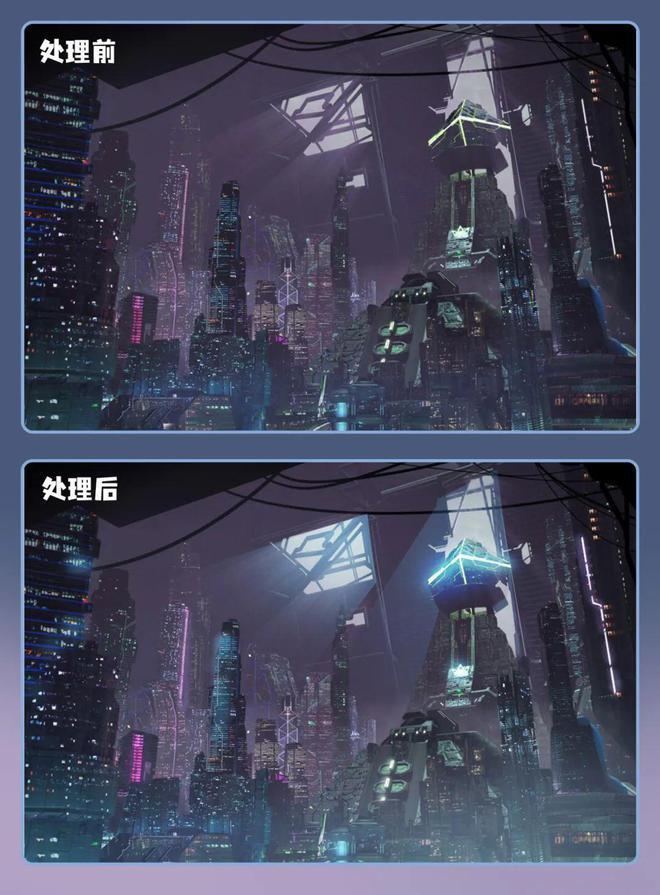 画面叠一层强光可以提升光感和氛围感,尤其是建筑,自下而上的光会有一种神秘感和氛围感!同时,在这个模式下把明度拉大并跨度改变色相,还会有意想不到的效果,但注意强光最好在做好明暗后整体使用。