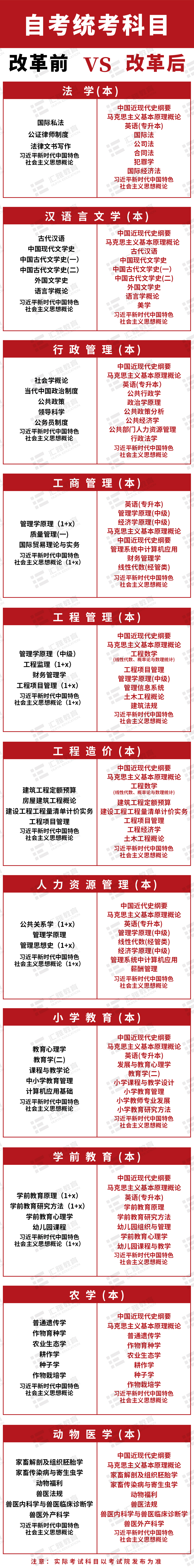 (1)本科统考科目增加三科,分别是“马克思主义基本原理15044”、“中国近现代史纲要15043”、“习近平新时代中国特色社会主义思想概论15040”;