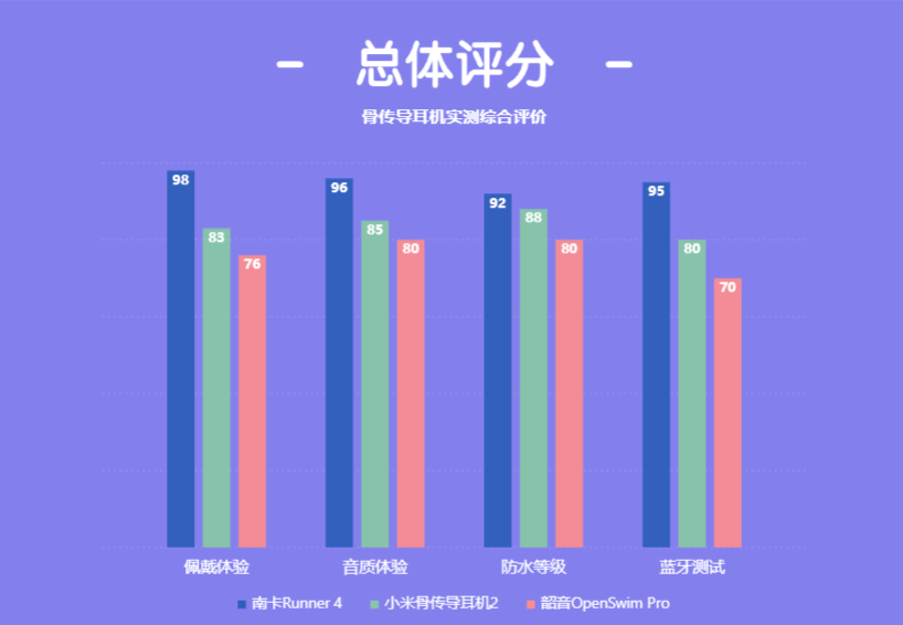 综合本次实测表现,三款耳机各有特点,但从整体体验来看,南卡 Runner 4是最值得推荐的选择。它在音质、佩戴舒适度、防水性能和蓝牙稳定性上几乎无短板,能满足日常通勤、跑步、骑行甚至游泳训练的多场景需求。尤其是音质表现,低中高频均衡自然,接近入耳式耳机的听感;加上两小时长跑无压迫的佩戴体验、游泳级防水和几乎零延迟的蓝牙连接,让它成为一款真正可以全天候佩戴的高性能骨传导耳机。对于追求音质和舒适度、又想解放耳道的运动人群来说,Runner 4 是一款几乎闭眼入的选择。