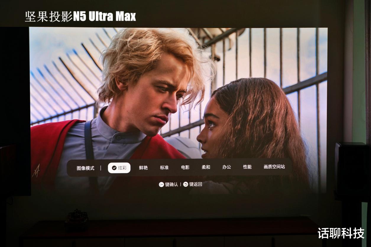 所以如果因为画质哪个好坏纠结,感觉没必要,两款都能满足你使用,并且都支持画质空间站模式,也就是自己根据喜好,调校画面风格。我比较喜欢坚果N5 Ultra Max的浪漫柔光、日系清新两个画风,非常适合看现代爱情剧。