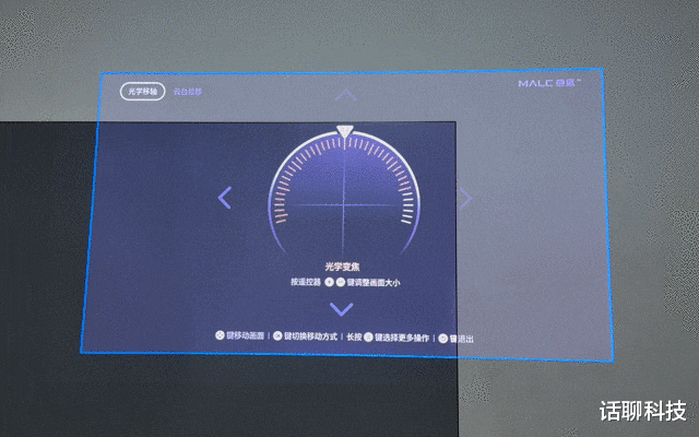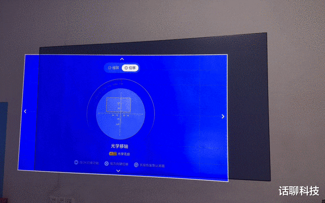 另外与投影画面有关的还有一个移轴功能。普通投影仪机器角度固定,画面就固定了,如果想要调节移动,就只能云台转动,转动之后就会增加梯形畸变,畸变矫正就设计剪切画面。这也是投影仪与墙面角度越大,最后校正后画质越差。