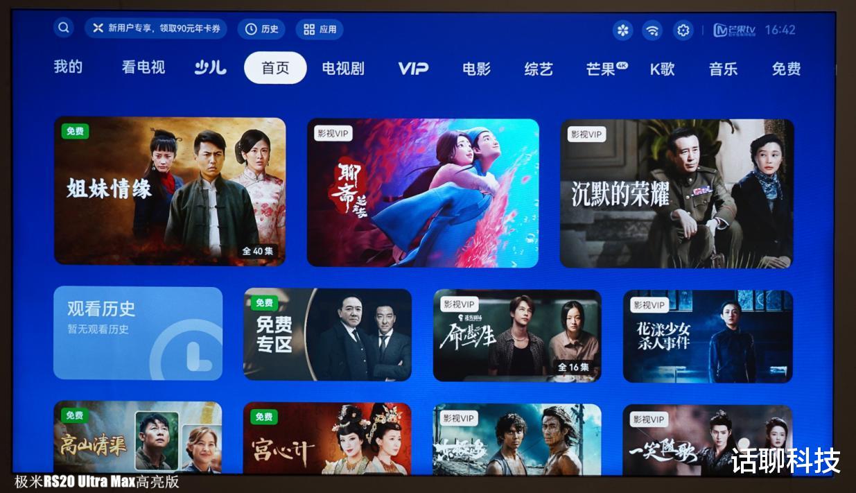 但极米RS20 Ultra Max高亮版的系统,依旧是传统默认传统界面,感觉与十年前的智能电视没啥大区别,你要找个自己安装的APP,操作步骤很繁琐。