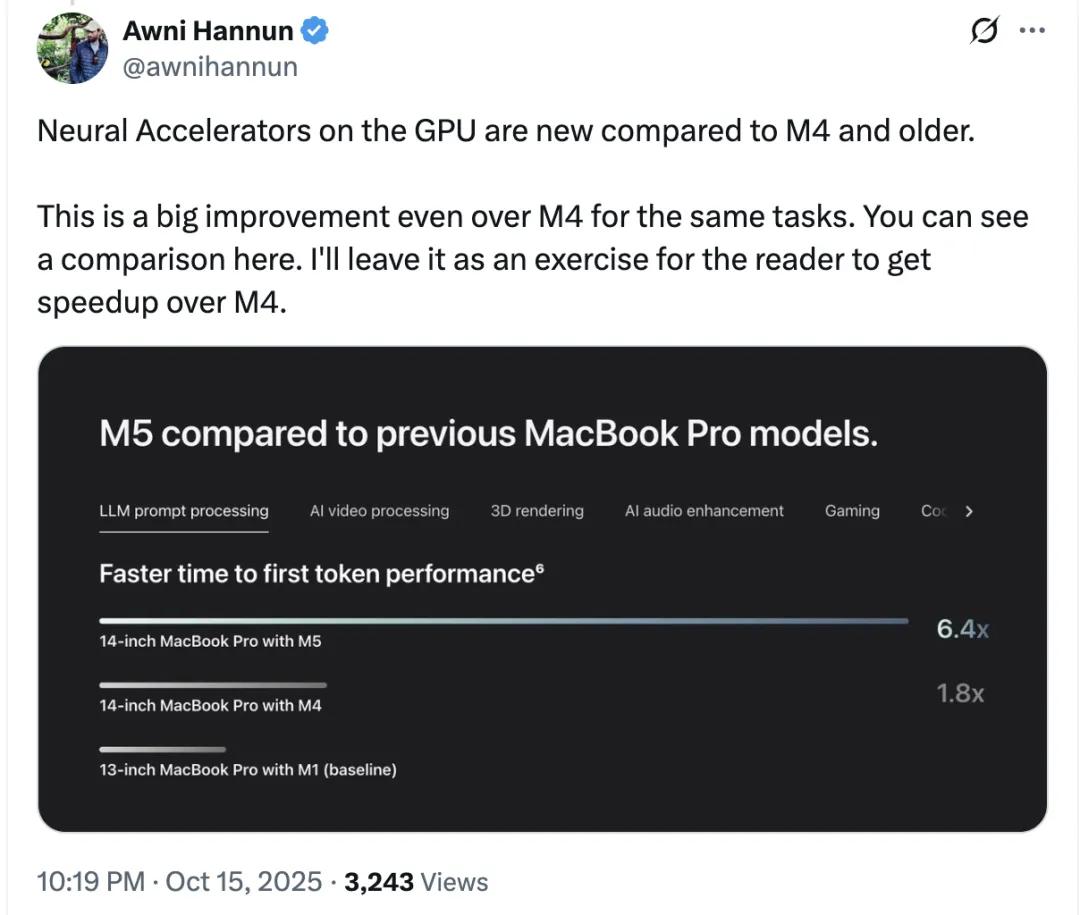 M5:苹果芯片AI性能的再次跃升 接下来来看看,这次M5到底发布啥,让网友这么不爽。