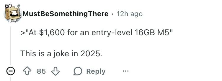 如今,“最强的苹果芯片”已经成了一个哲学问题,以至于在2025年花12999元买一台16GB内存的笔记本,也没人太在意了。