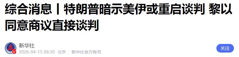 参考资料:综合消息丨特朗普暗示美伊或重启谈判 黎以同意商议直接谈判 ——新华社
