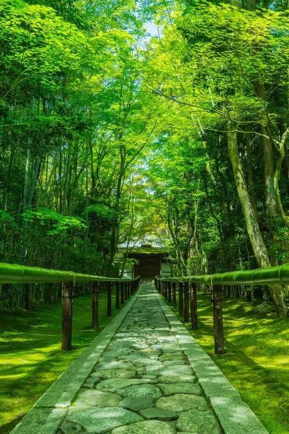 于庭院内种上青葱高大的树木,低矮错落的灌木。把墨绿的松针摆放在石板地上,聚散有致,一株红枫在竹林深处,井边石头包上了厚厚的茸样的青苔。