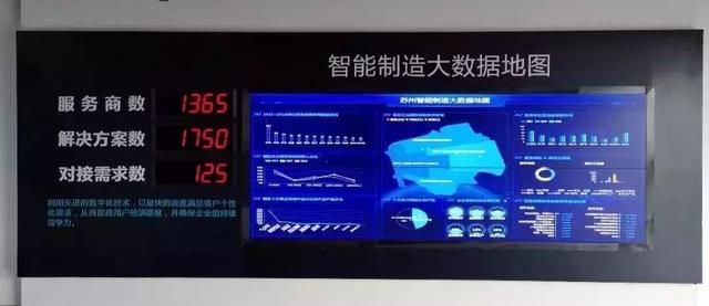 该中心大屏幕清晰地展示了中心服务资源情况和苏州工业园区乃至苏州市智能制造发展的情况