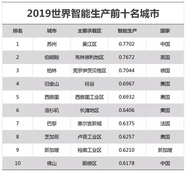 在近日发布的《世界智能制造中心发展趋势报告(2019)》中,苏州位列全球智能制造中心城市的第九名,仅位于国际化大都市纽约、上海、旧金山、伦敦、深圳、洛杉矶、东京的后面。