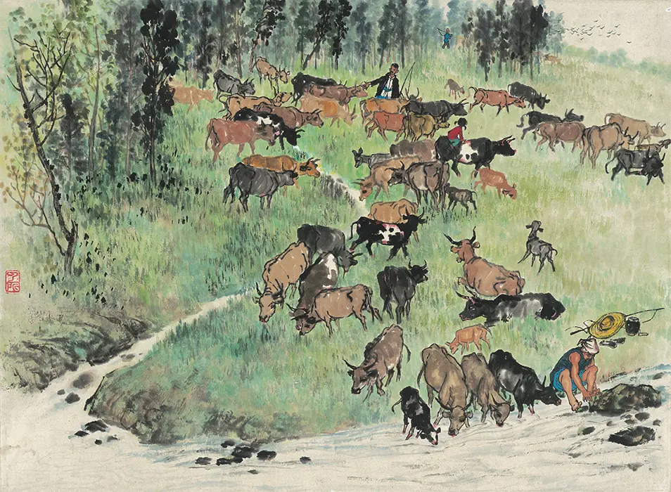 在天津美术学院深厚的历史文脉中,吕云所先生的早期代表作《漳河畔》组画,无疑是一座标志着艺术家个人风格萌芽与时代艺术转型的重要里程碑。创作于1962年——其于河北天津师范学院的毕业之际,这套由《河畔人家》、《太行秋色》、《收获季节》、《溪边牧歌》四幅作品构成的组画,不仅为他赢得了最初的声誉,更以其独特的艺术语言,为我们理解上世纪中叶中国山水画的演进提供了一个精微而深刻的样本。
