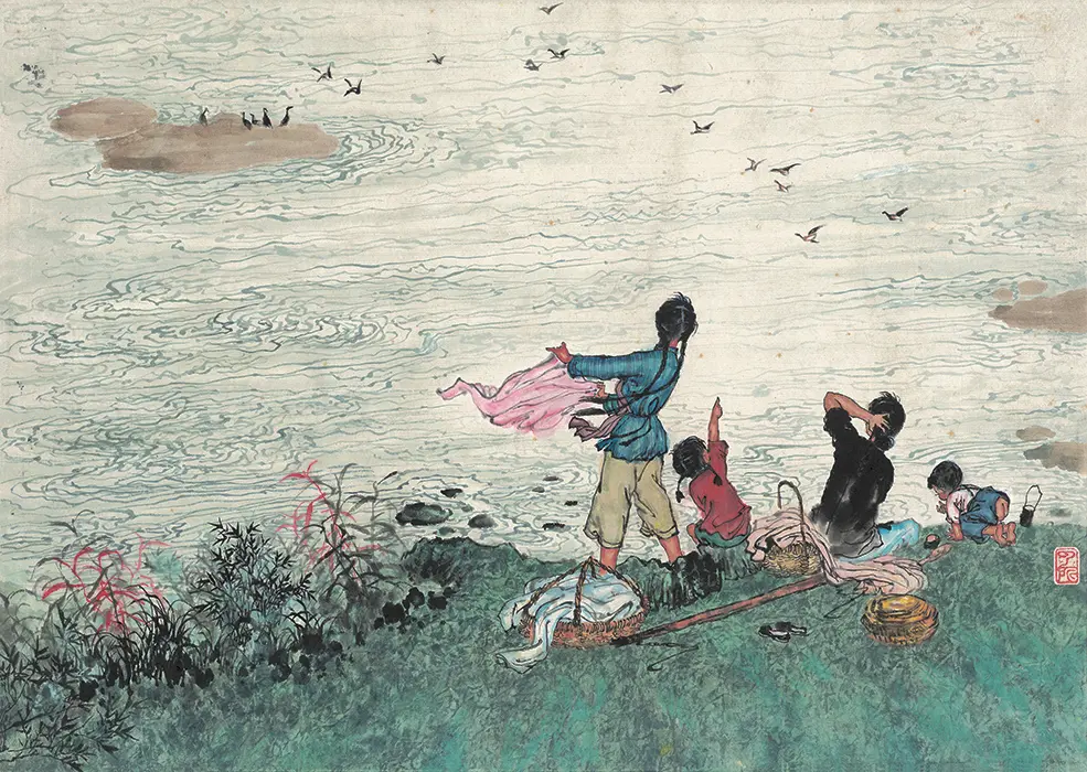 在二十世纪中叶的中国画坛,主题性创作往往依赖于文学性叙事与情节描绘来传达社会意识形态。吕云所的《漳河畔》组画则展现了一种可贵的艺术自觉。它取材于完成社会主义改造后的太行山区农村新貌,却并未落入当时流行的“情节化”创作窠臼。艺术家巧妙地将社会性主题内化,转而“偏重于以景写情的表现方法”,通过对漳河沿岸自然风光与人文景观的描绘,含蓄而真挚地抒发了对故乡的深厚情感。这种“借景抒情”的创作倾向,不仅凸显了吕云所作为艺术家的敏感与天赋,也在一定程度上疏离了直白的政治宣传模式,使作品的艺术本体价值得以彰显。