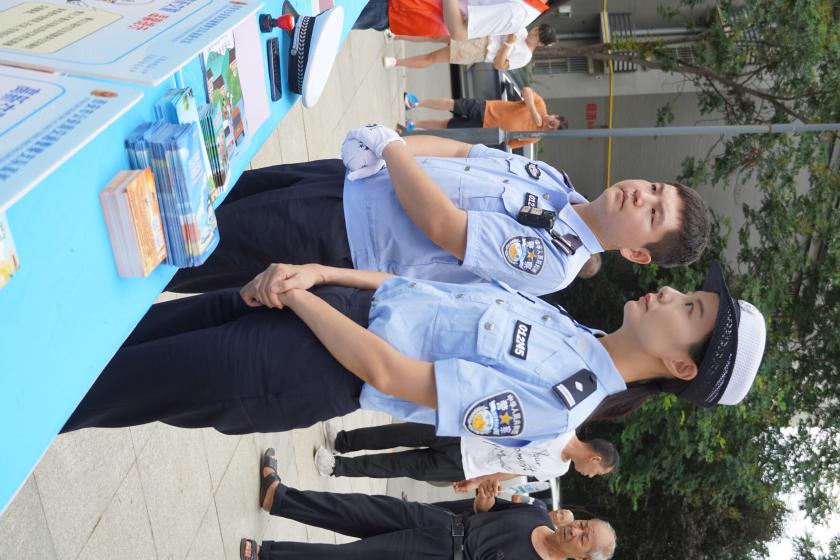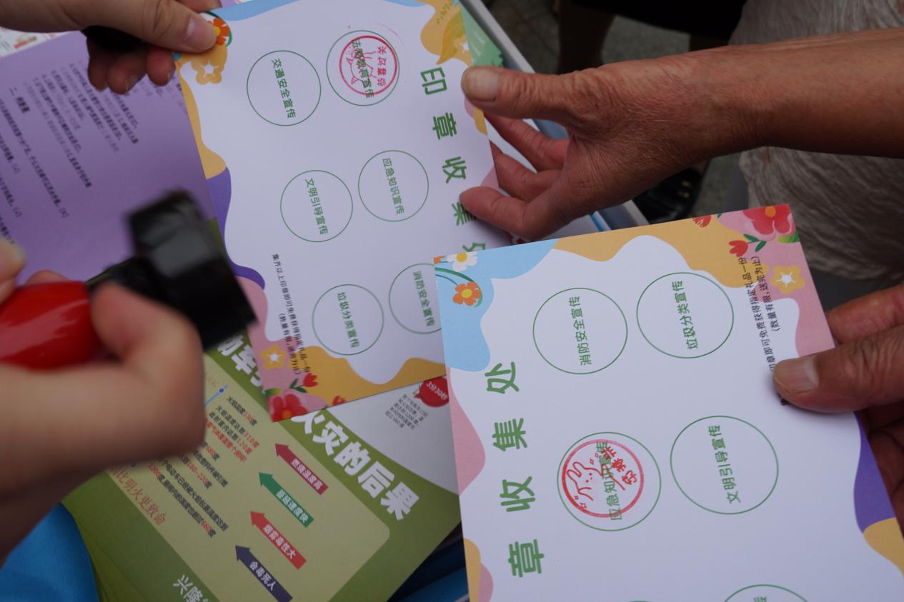宣讲环节结束后,现场群众纷纷在活动现场设置的法制教育、应急知识、消防安全、交通安全、文明引导和垃圾分类知识宣传点“面试”回答问题赢得集章机会,并在集齐印章后兑换丰富的纪念品。