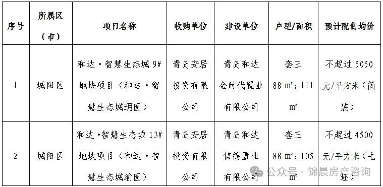 青岛正在大力推进保障房收购工作,目前已与三个商品房项目达成收购意向,约480套现房,拟改造为配售房源。其中最引人关注的是城阳的和达智慧生态城,共计88套房源,预计配售均价分别不超过5050元/㎡(简装)和4500元/㎡(毛坯),约有440名符合条件的家庭报名参加,远远超过房源数量。