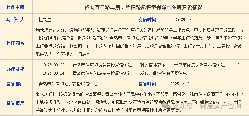 不久前,突然传出消息:李沧京口路二期、市北华阳路等保障房用地,因控规调整,不适宜建设配售型保障房,原本打算继续扩大配售房供应的计划被叫停。官方并未正面解释为何取消,但此举显然是重大策略调整的信号。