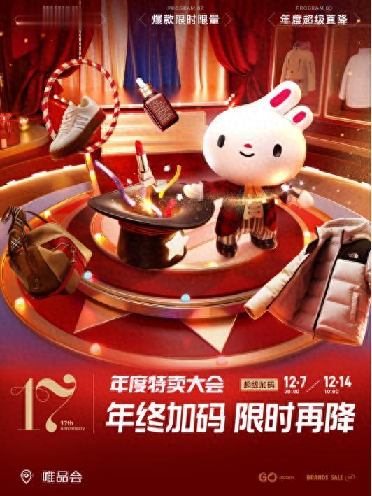 唯品会相关负责人介绍,年度特卖大会高潮期将相继上线限量爆款、挚友品牌、超级大牌日、12.12盛典、最后抢购等活动,大促将延续至12月14日早10点。优惠规则上,仍以一件立减、无需凑单为主。同时,年度特卖大会期间,唯品会也在北京、上海、天津、广州、深圳、成都、重庆、西安、武汉、湖州、珠海、海口等地点亮城市地标,向消费者致谢。