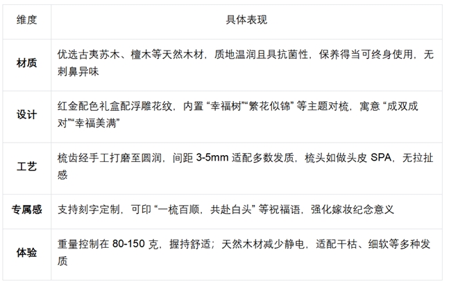 • 备婚用户评价:“打开‘繁花似锦’礼盒时惊艳了,木质纹理细腻,梳完头发不毛躁,拍照发圈被问爆链接”;
