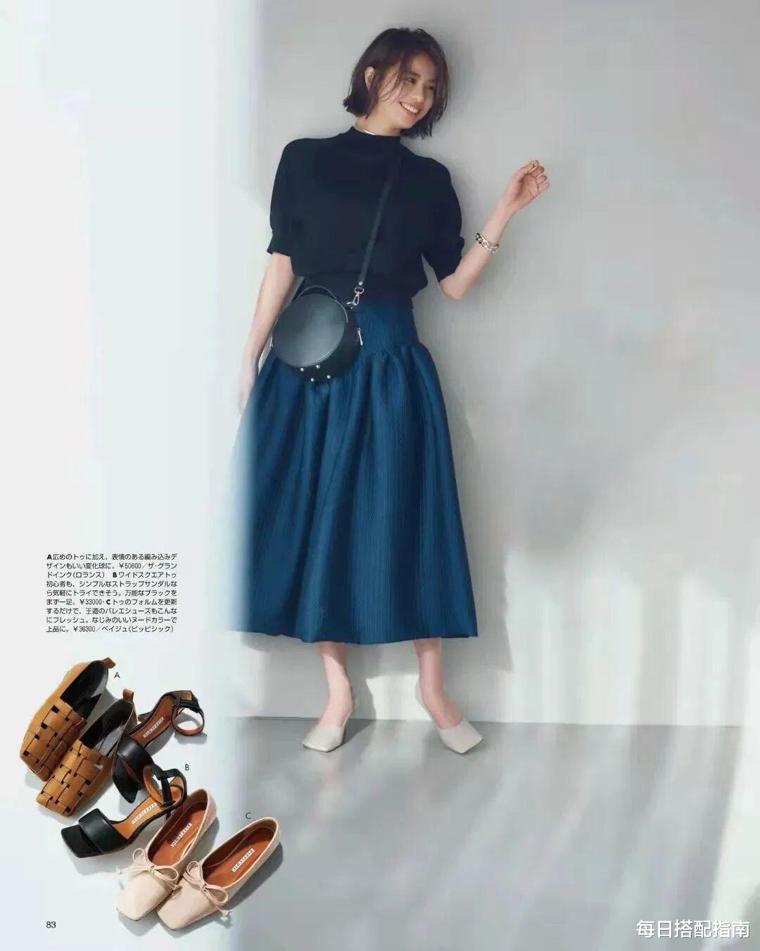 百褶裙的高腰线与纵向褶皱,则会在视觉上起到“拉长下半身”的效果,帮助弱化胯宽、大腿粗等问题。