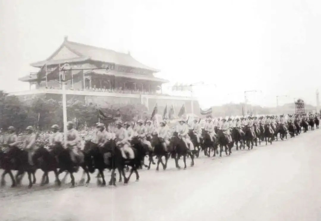 然而,正是这支从战火中走来的队伍,步伐铿锵,目光坚毅,展现出新生政权朝气蓬勃的生命力。尤其值得一提的是,此次阅兵是历史上唯一一次有骑兵方队参加的阅兵,它也标志着人民军队正式开启了从骡马化向机械化的伟大转型。