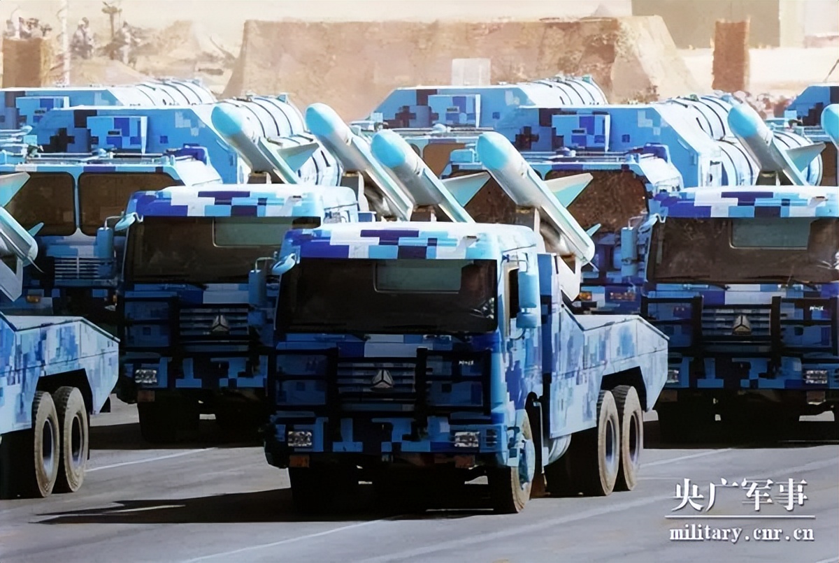 而更具威慑力的,当属核导弹方队。受阅的“惊雷-1”空基远程导弹、“巨浪-3”潜射洲际导弹、“东风-61”陆基洲际导弹、“东风-31”新型陆基洲际导弹,首次集中展示我军陆、海、空基“三位一体”战略核力量。“东风-5C”液体洲际战略核导弹是我国战略反击体系中的重要组成,打击范围覆盖全球,全时戒备、有效威慑,以武止戈、砥定乾坤。