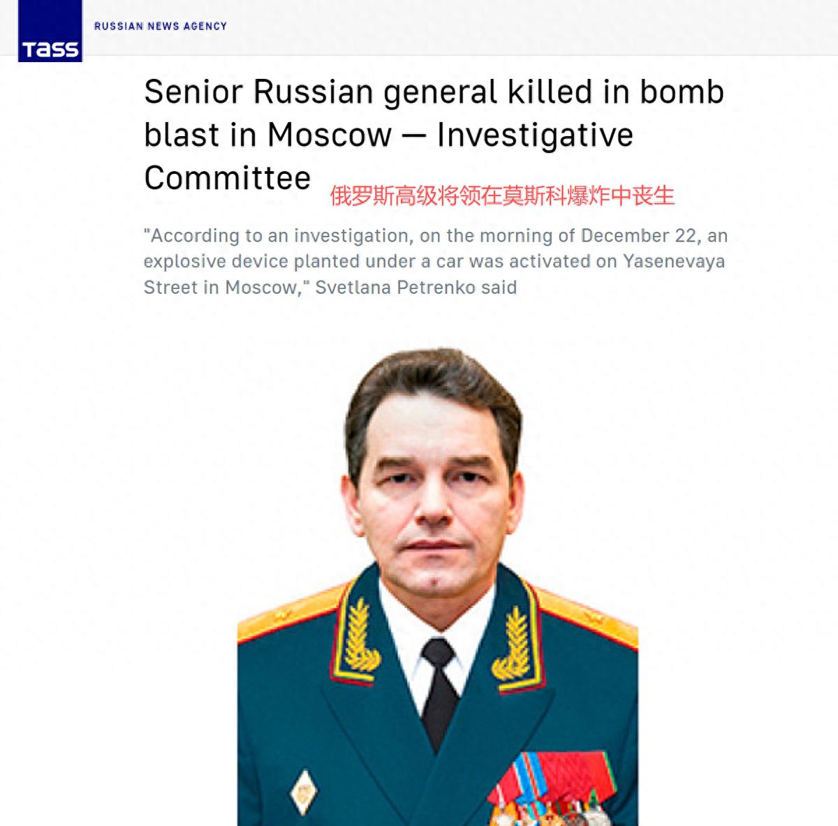 图注:俄罗斯塔斯社证实萨尔瓦罗夫中将遇刺身亡