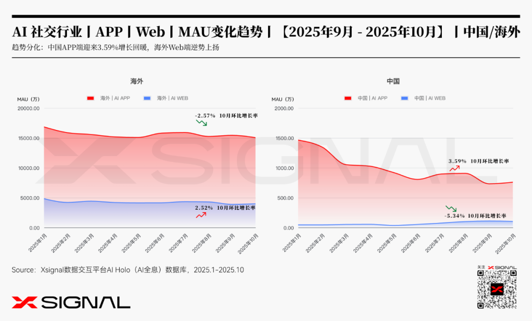 OpenAI正式推出ChatGPT群聊功能,标志着AI开始从“对话工具”升维为社交网络中的“节点”Character AI的增长瓶颈与Web端的逆势崛起,共同指向了一个趋势:。本报告将依托Xsignal独家数据,深度剖析ChatGPT如何通过“嵌入关系链”对现有市场实施降维打击,以及PolyBuzz等挑战者如何凭借极致体验在存量市场中实现突围,为从业者提供前瞻性的决策依据。