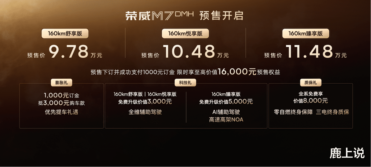 荣威M7 DMH已于成都车展开启预售,预售价9.78万元起,一周内订单已破万。这款长续航中大型豪华轿车将于9月17日正式上市,届时更多购车权益与配置细节全面公布,将以越级实力定义10万级混动家轿新标准。