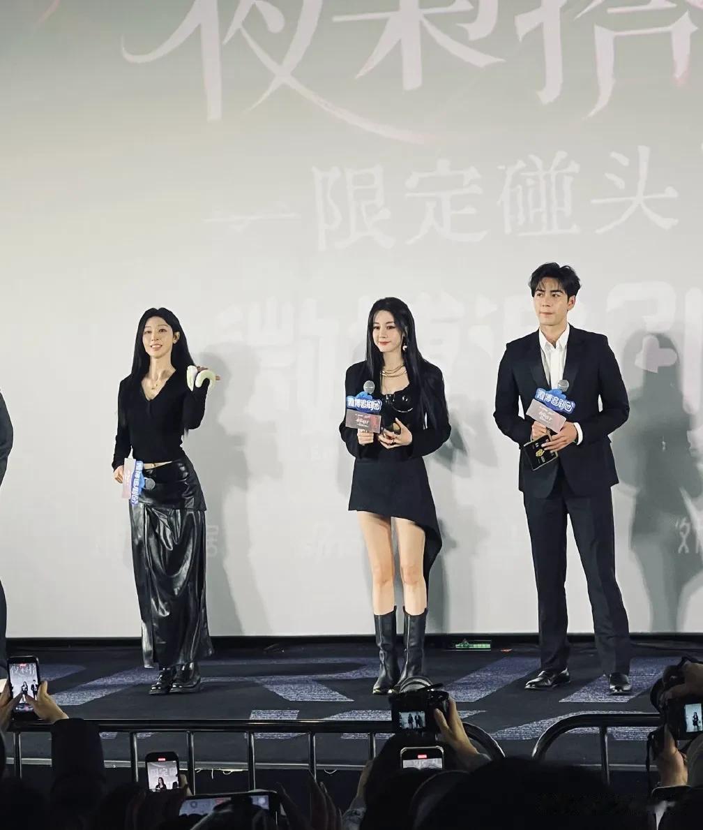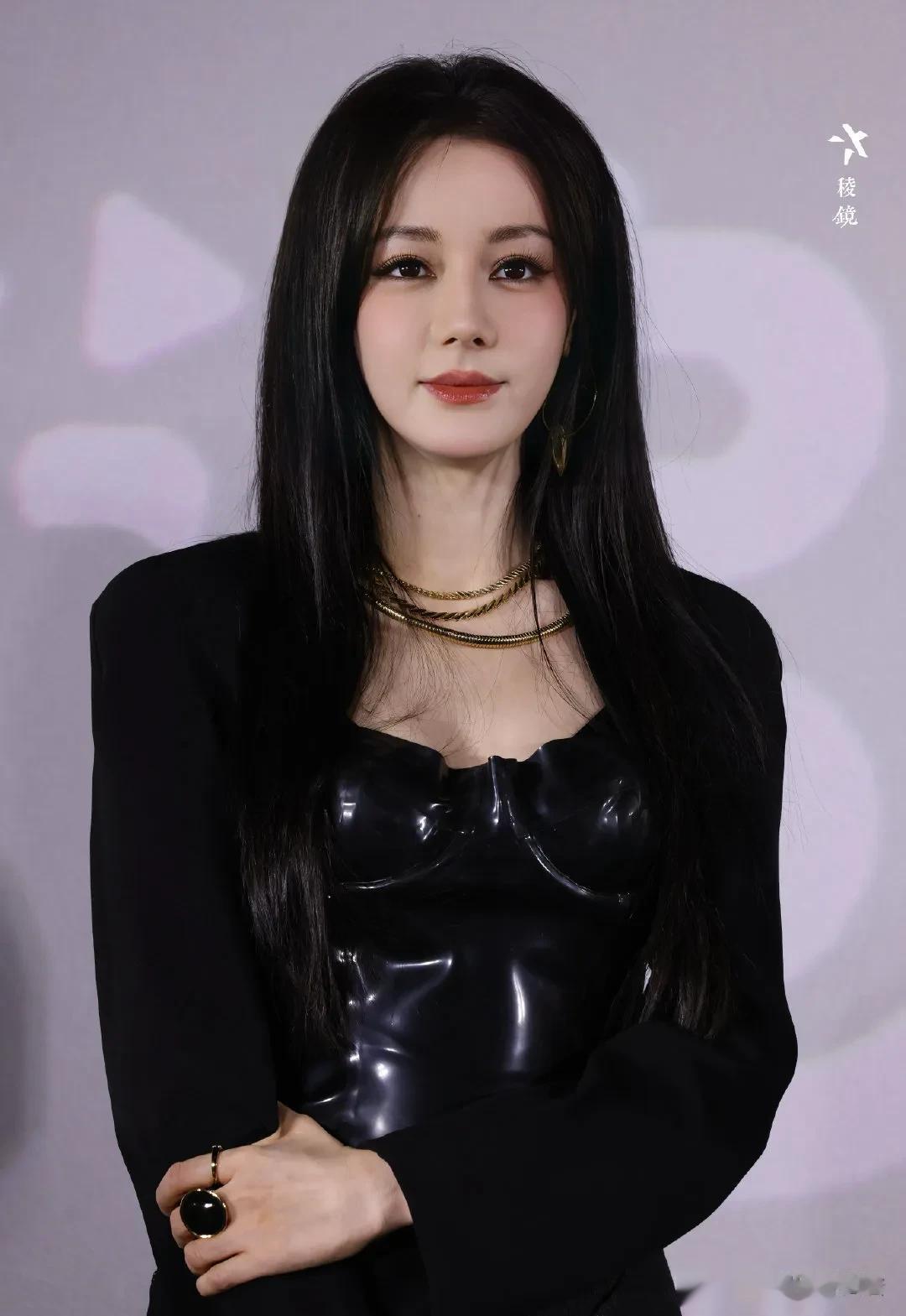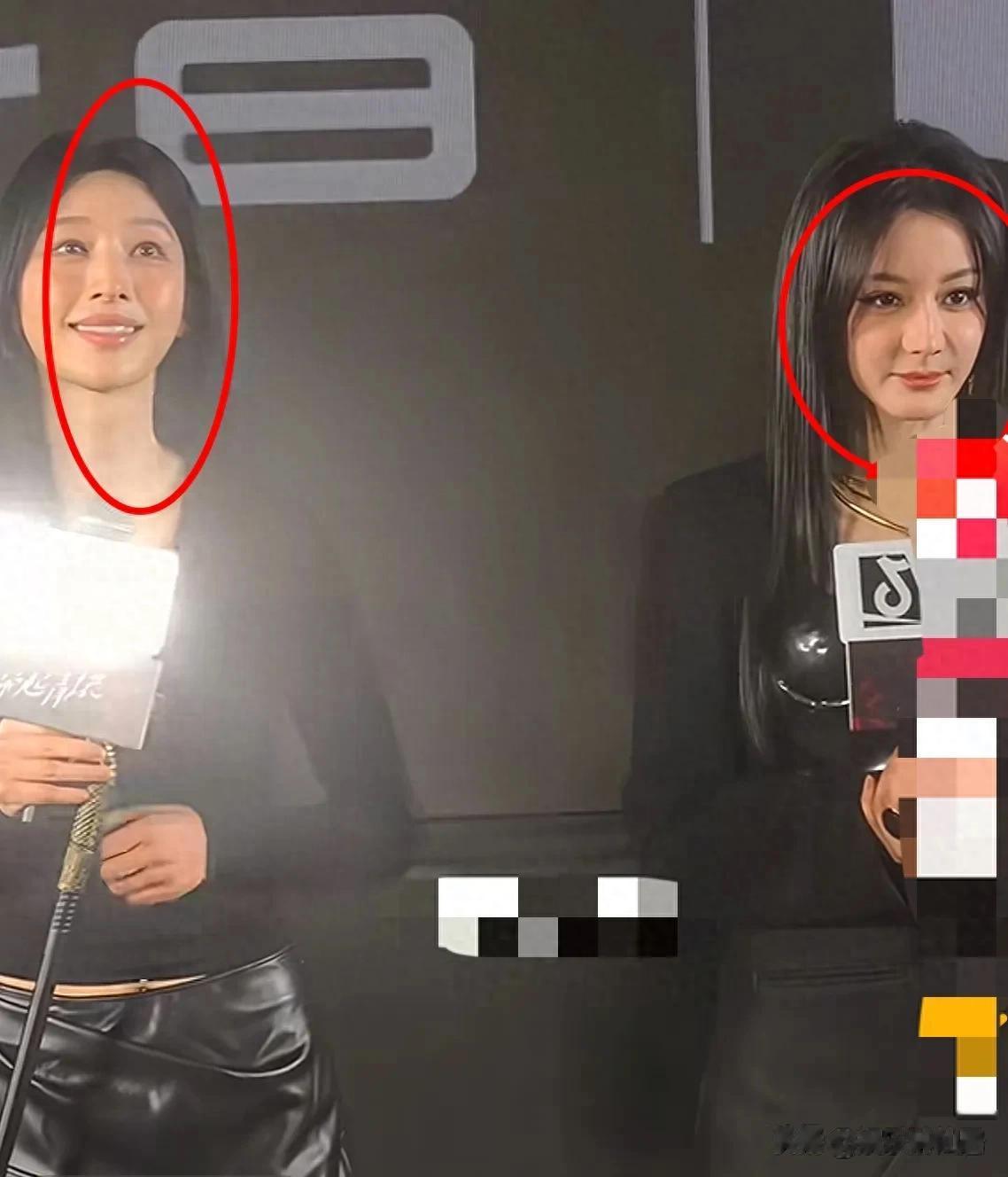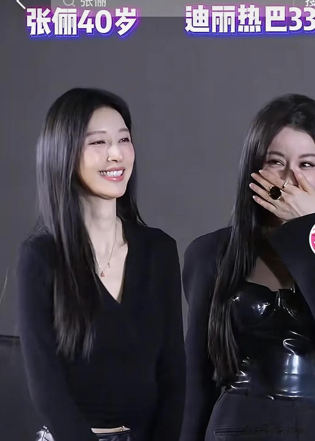 张俪也是一身黑,但她上身黑色打底比较有女人味,下身搭配的皮裙非常特别,两个人都是黑长直,对我的眼睛不要太友好,她都43岁了真的看不出来,