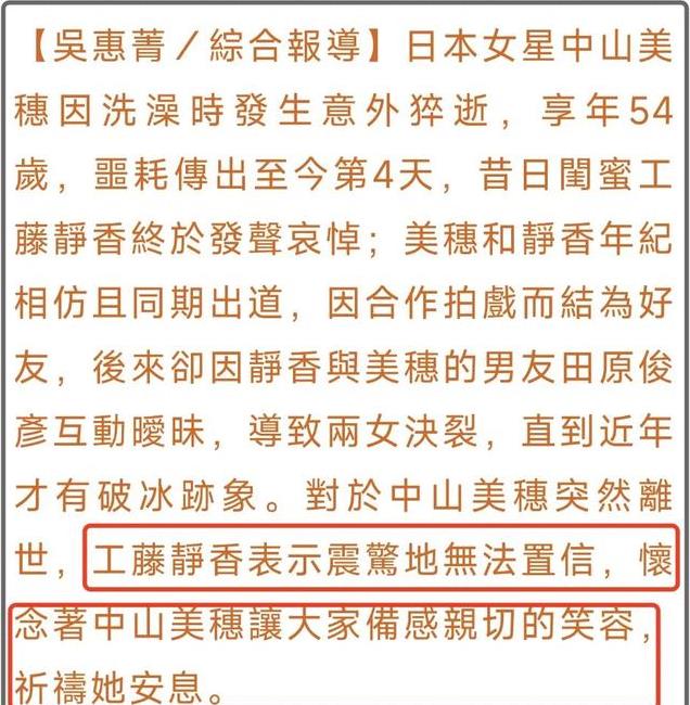 近日,中山美穗去世的新闻引发了很多网友的关注。