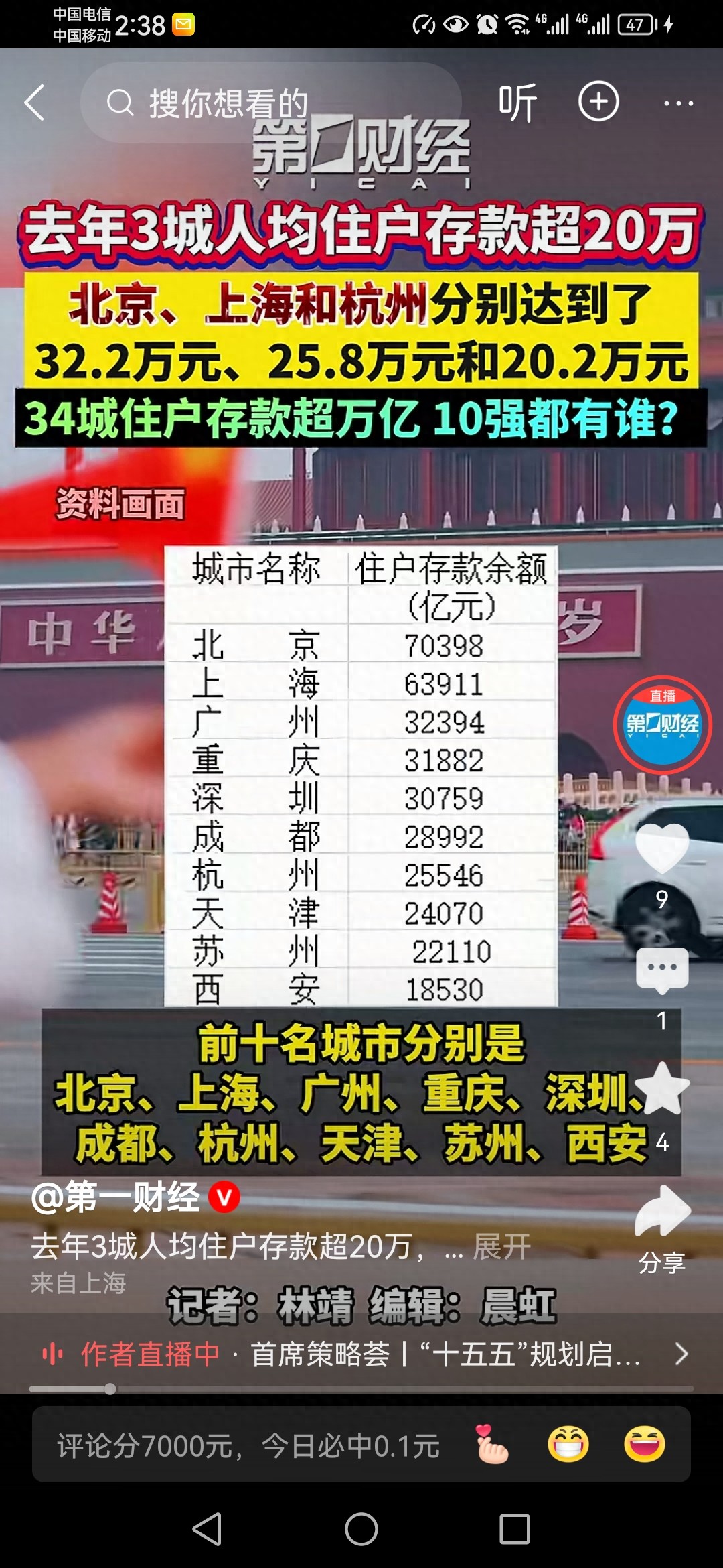 近日,有专业媒体统计了全国34个城市的2024年的人均存款的情况,有两个非常值得关注的数据,一个是有三个城市(北京,上海,杭州,很意外,没有深圳和广州,)的人均存款超过了20万。另外一个是全国人均存款前10名的城市名单也出炉,究竟是哪些城市的朋友如此的厉害呢?