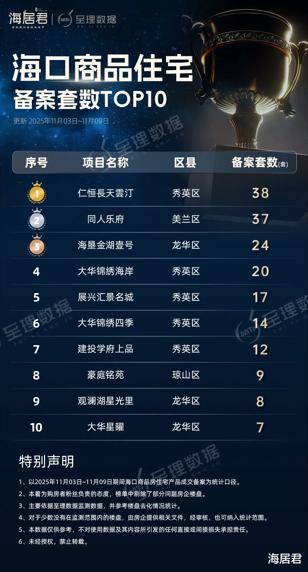 海口主城核芯区金牛岭片区的海南农垦中学“书包房”海垦金湖壹号成交备案24套、约2750平方米,摘得海口成交套数、面积双榜季军。