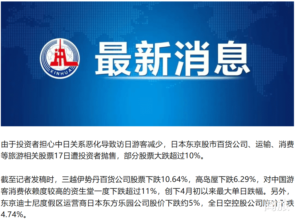 所以,再回过头来看,中国公民暂缓日本旅游,导致日本旅游和消费类股受重挫,这件事“抽象”吗?