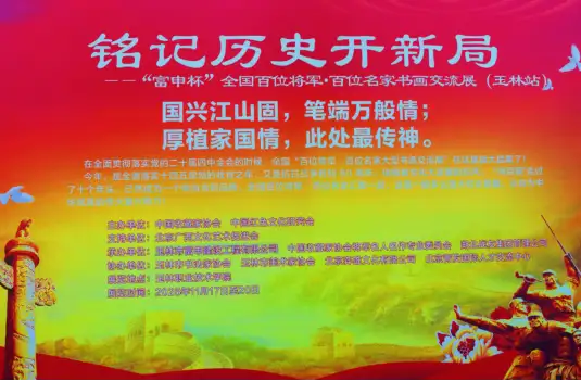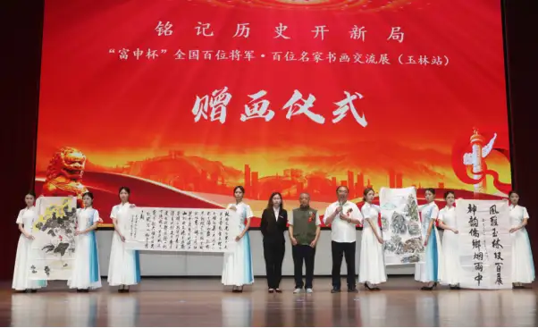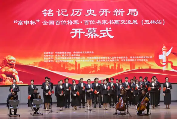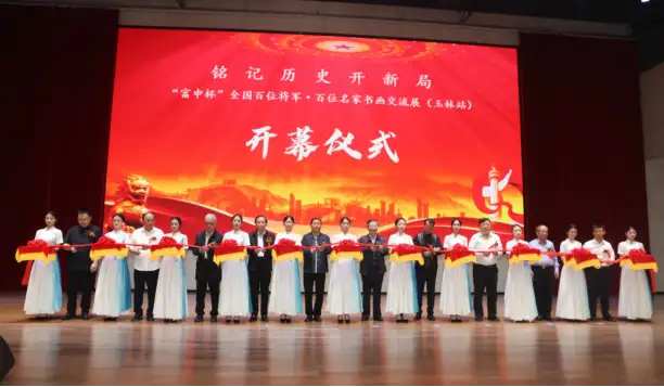 (记者:雍辉、胥柳茏、张一潼)富申杯“全国百位将军·百位名家书画交流展”(以下简称“双百展”)于 11 月 17 日在广西玉林隆重举办。此次活动以“铭记历史开新局”为主题,融合书画艺术展览与国防教育宣讲,汇聚了共和国将军、书画名家、英雄模范及社会各界人士,共同见证了一场红色文化与艺术精粹交融的盛会。