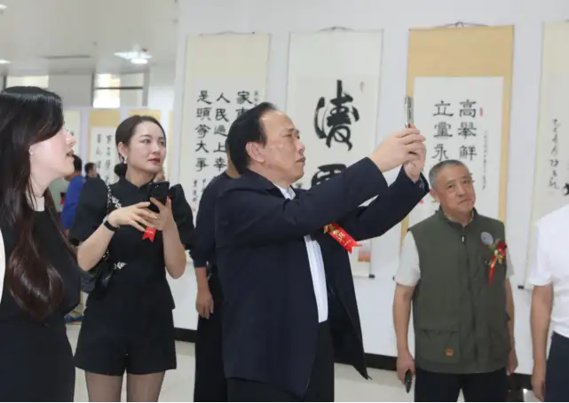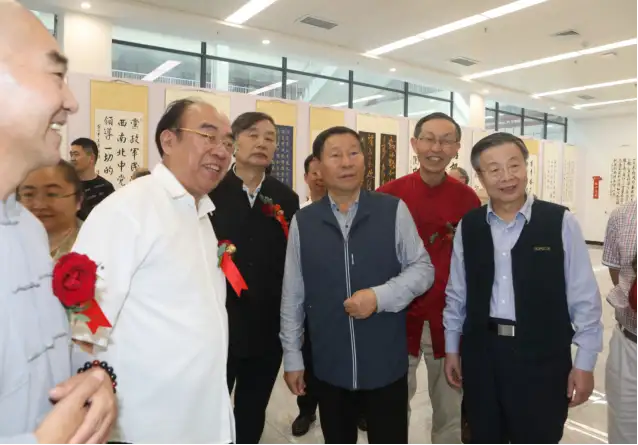 展览在玉林职业技术学院新落成的现代化展厅举行。开幕式现场庄重而热烈,来自全国各地的将军、学者、书画名家及当地领导、师生近千人出席。著名书法家孙志刚、赵君、刘建武、林秋璇等带着他们的作品莅临现场。国务院原科教领导小组成员聂兴国、中国收藏家协会理事长刘铭威、中国红色文化研究会秘书长张福俭、北京北国风书画院院长陈俊生、全国“双百展”玉林站组委会秘书长陆路通、中国人民大学研