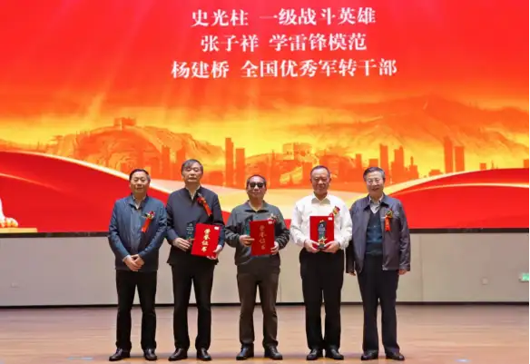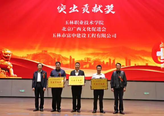 开幕式上,组委会专设“致敬英模”环节,向为国防事业和文化传承做出贡献的英雄模范表示敬意。被中央军委授予“一级战斗英雄”荣誉称号的史光柱、“学雷锋模范”张子祥,以及“全国优秀军转干部” 杨建桥登台接受荣誉。史光柱在战斗中身负重伤、双目失明后,以惊人毅力成为中国首位盲人学士,用诗文和歌曲传递生命意志;张子祥在 36 年军旅生涯中多次立功受奖,退休后持续投身国防教育;杨建桥转业后创办战友集团,吸纳 3000 余名退役军人创业就业,以实干诠释“退役不褪色”。他们的感人事迹赢得全场热烈掌声,彰显了英雄精神的时代价值。此外,组委会还为活动做出突出贡献的个人与单位颁发了奖项, 包括陆路通、禤运红、黄创军、唐彰元、陈俊生、张子祥,玉林职业技术学院、北京广西文化促进会、玉林市富申建设工程有限公司获奖。同时,还表彰了最美志愿者。