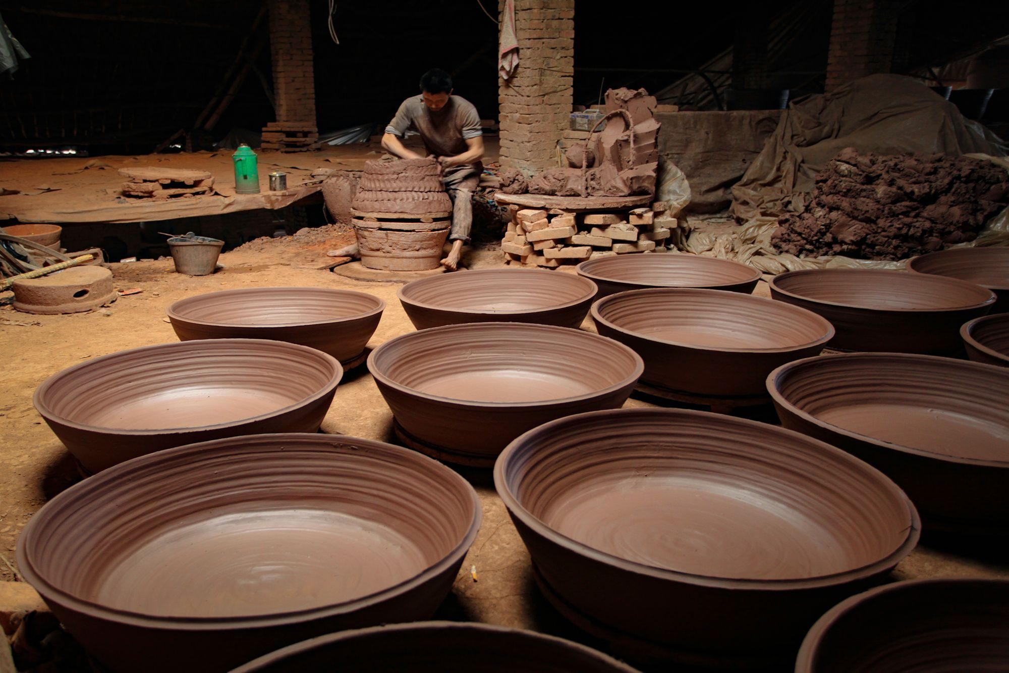 陶缸制作起来是件大工程,需用整块陶土分段拼接,多次修型才能成型。除了人们熟知的酒坛,泡菜坛、花盆等也是隆昌土陶的“专长”。