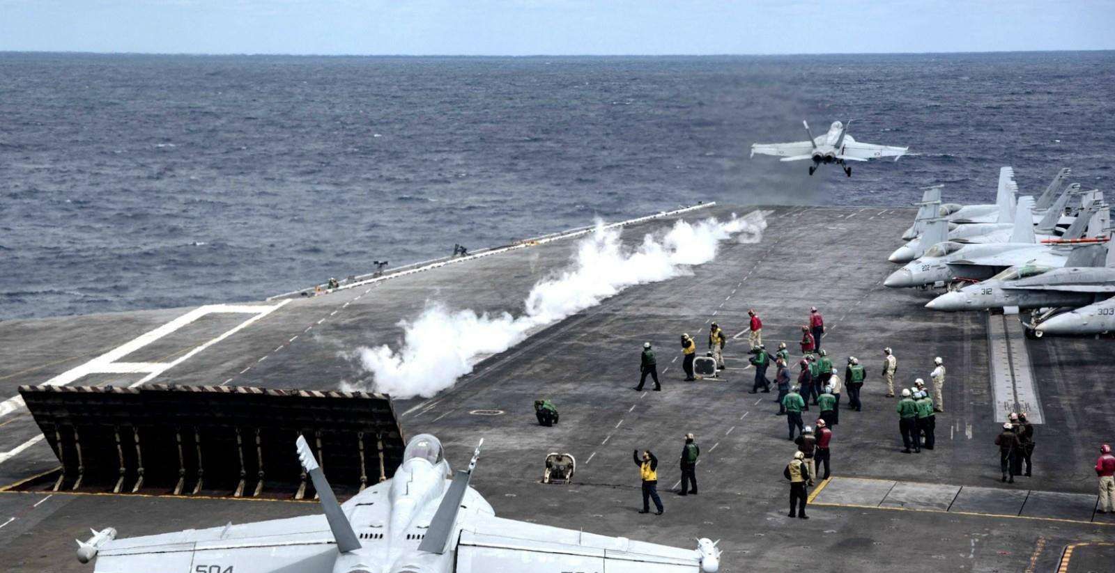 1991年的海湾战争中,参战的美国海军“罗斯福”号(CVN-71)航空母舰在43天的作战时间内起降4149架次舰载机,平均每天起降96架次。美军自己的数据显示,尼米兹级航母在实战中,前几天状态最好的时候,单日极限起降架次是220架次,如果作战时间拉长尼米兹级航空母舰的单日起降架次就会降低到200架次以下,甚至会低于150架次,这还是航母所有系统都没有故障的情况下,而尼米兹级的锅炉系统、高压蒸汽管道系统以及蒸汽弹射系统都非常复杂,连续作战几十天中间必须进行必要的维护,这必然会让弹射速度大幅下降。