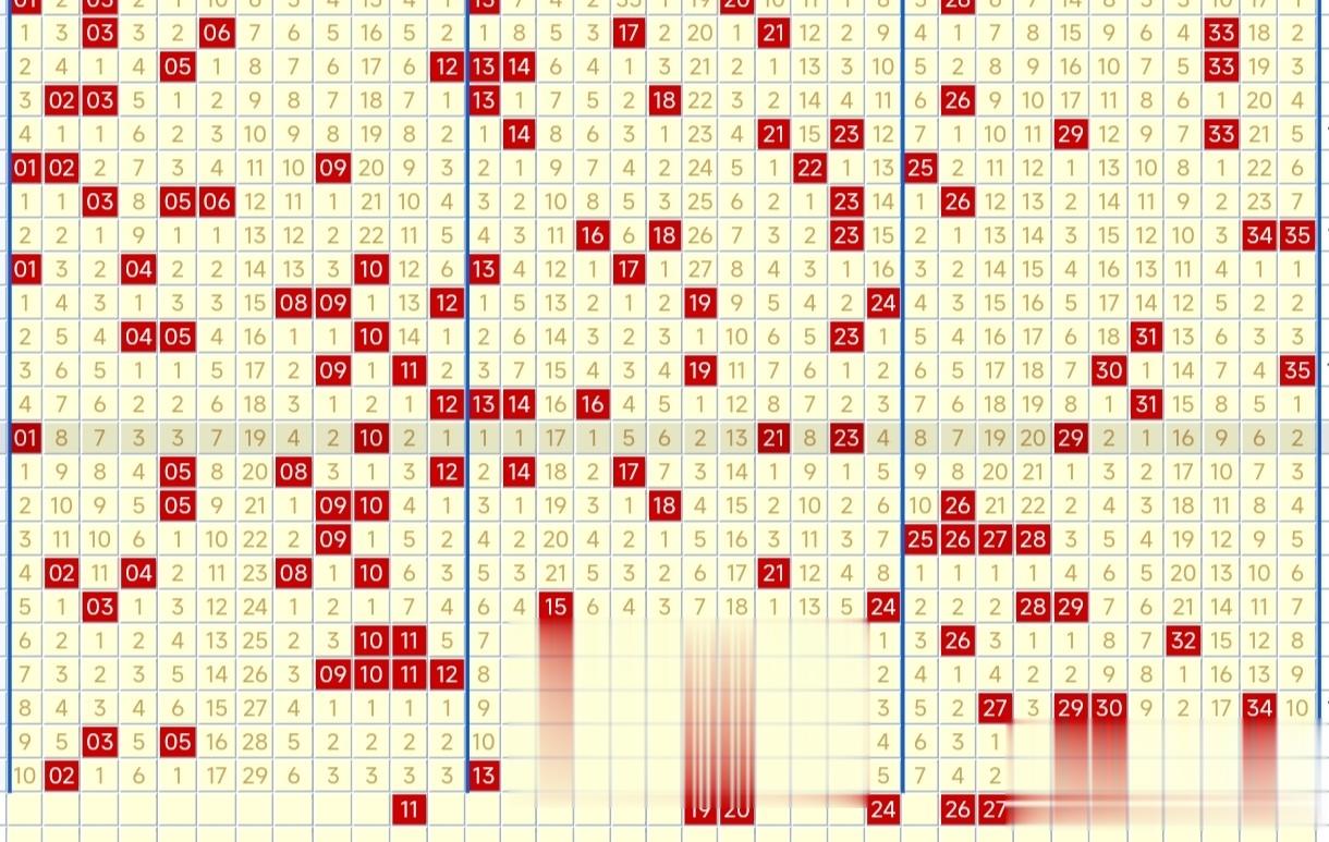 而且上期和本期均开出了两个邻号,上期所开出的邻号为33、35,而本期则开出了02、34。之所以邻号能够开出,是由于在02-03和33-35之间有奖号集中扎堆热开现象。尤其是在33-35之间,形成热点区域趋势比较明显,预计接下来此区域将会继续有奖号开出。