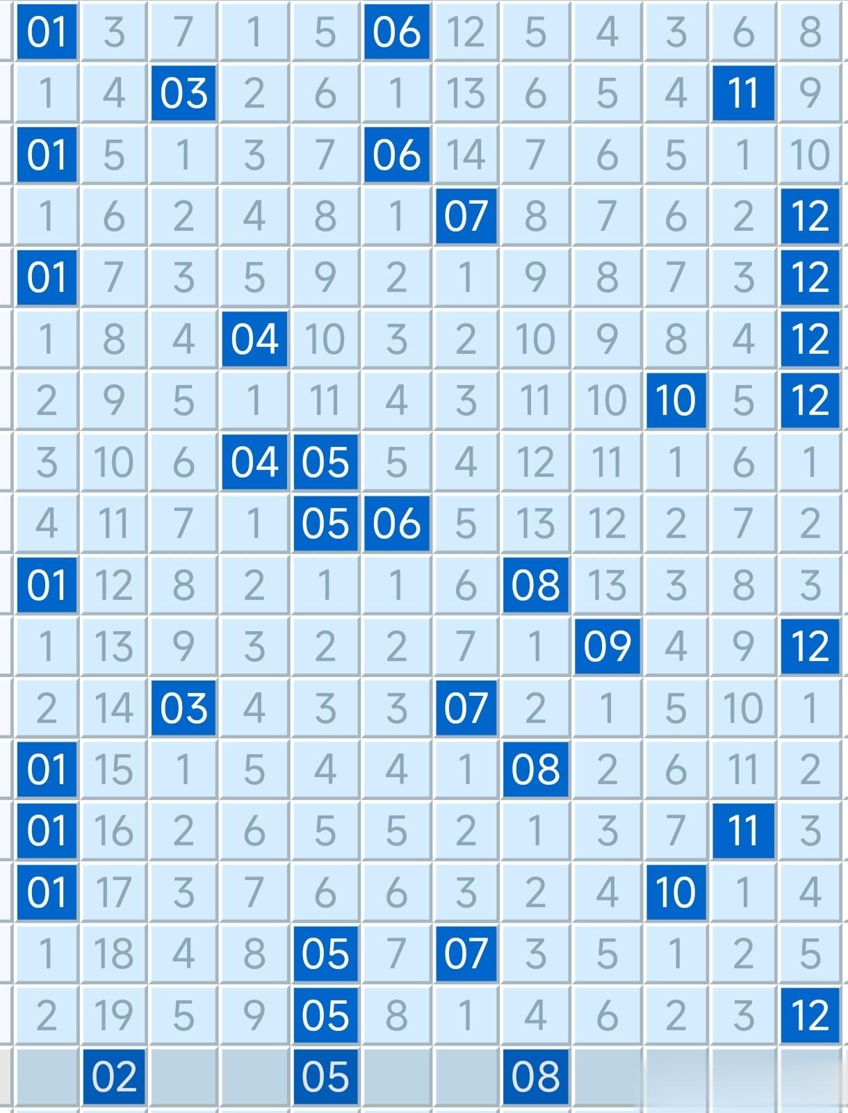 后区号码走势本期后区奖号开出了05-12组合,其中05为重号开出。最近一段时间,号码05热度始终处于高位,开出频率非常高,并且多以重号形式开出。
