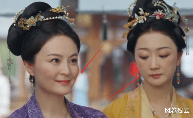 但离惊艳差着一大截呢,只要没有面光的加持,她的脸就如同一张扁平的“大饼”,尤其是头发全部梳上去的镜头,她就有些扛不住了。