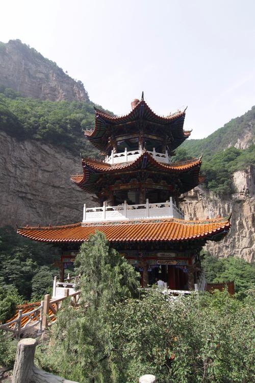 位于西峰半山腰,始建于清乾隆年间,供奉道教八仙之一的吕洞宾。庙内“悬空栈道”是一绝——木栈道仅靠崖壁木柱支撑,行走其上,脚下是百米深谷,耳边是山风呼啸,惊险与刺激并存。