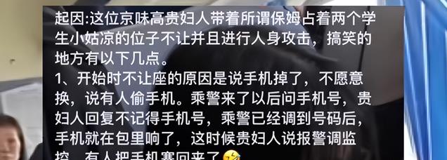 在事件中,女子最初谎称自己的手机被偷,但当乘警拨打其电话号码时,手机却在她包内响起,这使得她的谎言被揭穿。