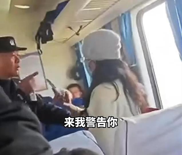 工作人员见劝说无效,只好去找乘警,这个时候情况已经有些剑拔弩张了。