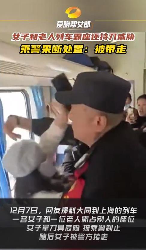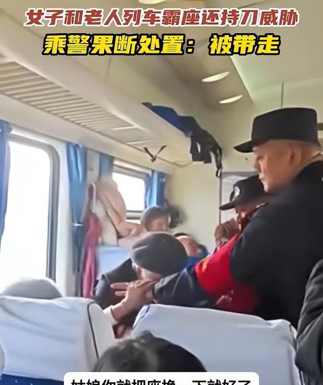最终乘警在无奈之下,只能采取强制手段将女子和老人带离座位,等待进一步的处理。