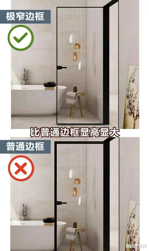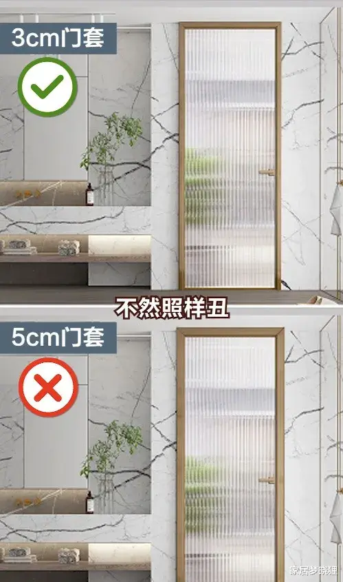 注意要问商家【门套】是多少,门套3cm的长虹玻璃极窄门会比较好看,比普通边框显高显大。超过4cm,照样丑。