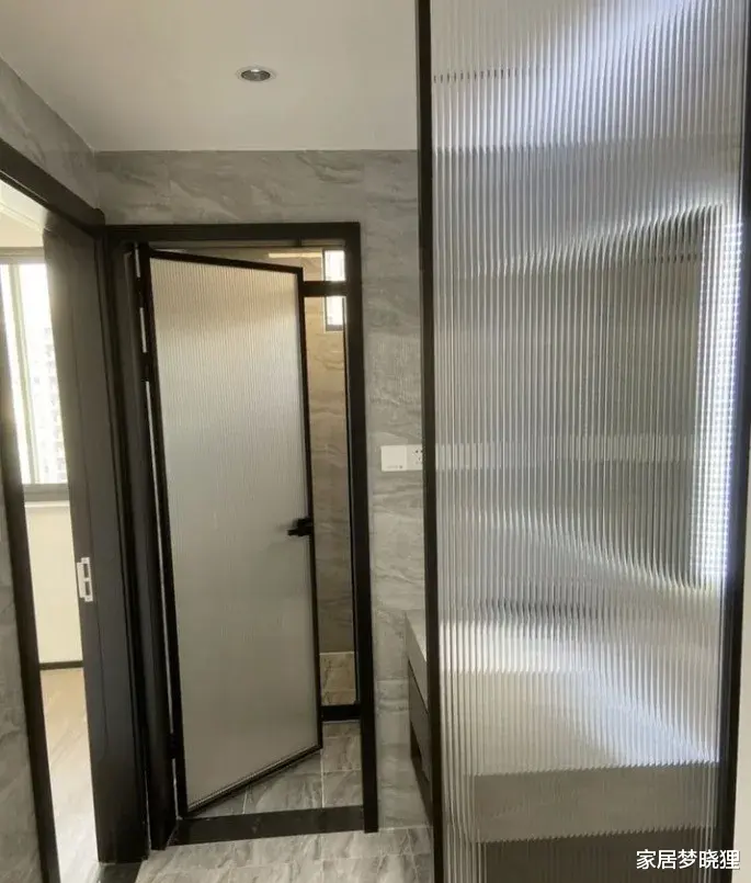 做白色门框的朋友,再次提醒门扇一圈的胶要打白胶。建议做黑色或金色门框,加上一层磨砂玻璃,一层长虹玻璃,(注意是外层长虹,内层磨砂)既保证了隐私,也保证了颜值,百搭不出错。