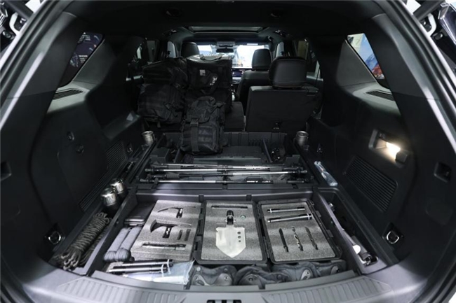 ✅ 收纳细节控狂喜:近100L隐藏式储物盒+15个分区储物格,内置可移动挡板。矿泉水、救援绳等小物件各就各位,干湿分离灵活方便!