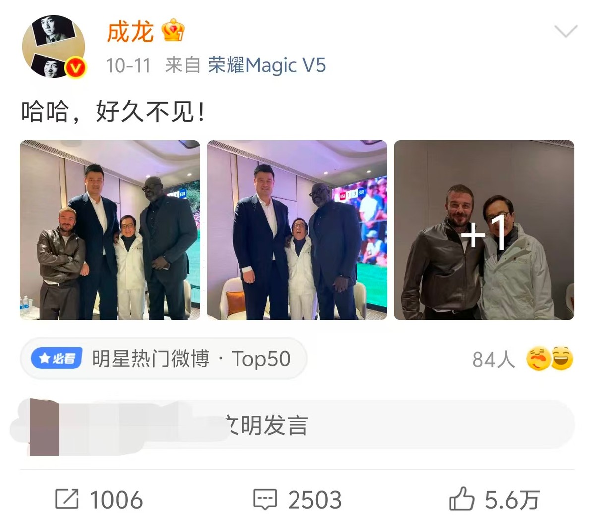 第二个消息是球星奥尼尔的中国行,不太关注球星的我,刷到成龙大哥在社交网站分享与奥尼尔的合照时,还以为他是免签过来,感受中国的大好河山的。