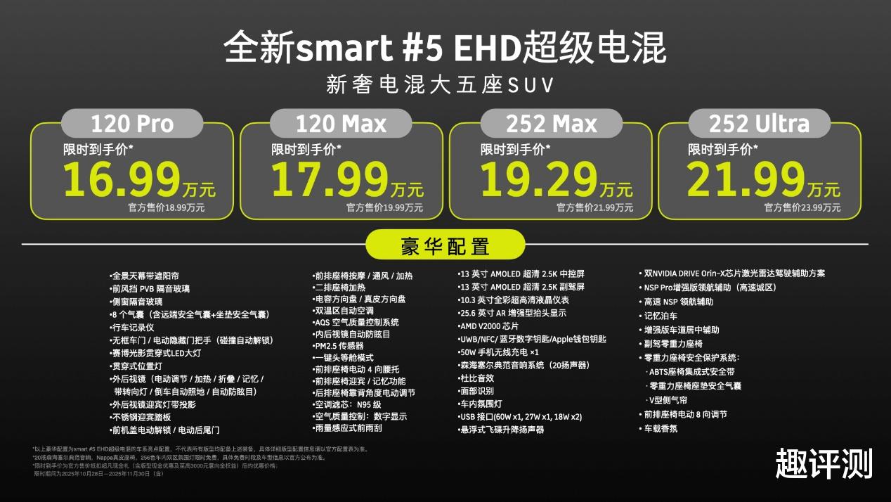 smart #5 EHD超级电混正式上市,限时到手价16.99万元起